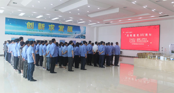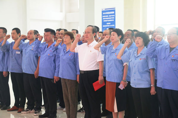 7月1日上午,滄州四星玻璃股份有限公司舉行黨員“不忘初心·重溫入黨誓詞;牢記使命·堅定信念跟黨走”主題黨日活動,慶祝中國共產(chǎn)黨成立101周年,喜迎即將召開的黨的二十大。 黨支部書記、董事長王煥一,支部副書記、行政副總李蘭舟, 公司顧問王建民,副總經(jīng)理范俊英,副總經(jīng)理王錦松,公司總工程師王希偉,公司顧問段玉新等黨員領(lǐng)導干部,公司全體黨員、部分提出入黨申請的積極分子等110人參加或列席活動。李蘭舟主持儀式。 上午8時整,公司一樓大廳內(nèi),全體人員隊列整齊,伴隨著《國際歌》慷慨激昂的旋律活動正式開始。在場的全體人員肅然起敬,面向黨旗行注目禮,齊唱國際歌,共同祝福偉大祖國更加繁榮昌盛,祝福四星玻璃更加美好和諧。 王煥一帶領(lǐng)全體黨員進行莊嚴的宣誓,教育引導廣大黨員賡續(xù)紅色血脈、牢記初心使命。“我志愿加入中國共產(chǎn)黨,擁護黨的綱領(lǐng),遵守黨的章程,履行黨員義務……”鏗鏘恢宏的誓詞,一字一句,神圣而豪邁。 王煥一在儀式上講話,他指出,希望同志們永遠牢記入黨誓言,堅定理想信念,始終對黨忠誠。堅定不移地用馬列主義、毛澤東思想武裝自己的頭腦,主動接受黨的監(jiān)督。廣大黨員要成為刻苦學習的模范、成為愛崗敬業(yè)的模范、成為團結(jié)協(xié)作的模范,發(fā)揚主人翁精神,為完成各項任務目標而努力奮斗,肩負起時代賦予我們的使命,擼起袖子加油干,用實際行動證明自己無愧于共產(chǎn)黨員的光榮稱號! 活動結(jié)束后,廣大黨員干部紛紛表示,此次活動意義非凡,今后必將牢記初心和使命,立足本職崗位,切實發(fā)揮黨員先鋒模范作用,勇于創(chuàng)新,求真務實,勤奮工作,在企業(yè)發(fā)展的進程中爭當先鋒,在職工群眾中樹立黨員干部攻堅克難、勇?lián)厝蔚牧己眯蜗,團結(jié)廣大職工,以更加堅決的信念,務實的作風為四星玻璃貢獻自己的一份力量! |